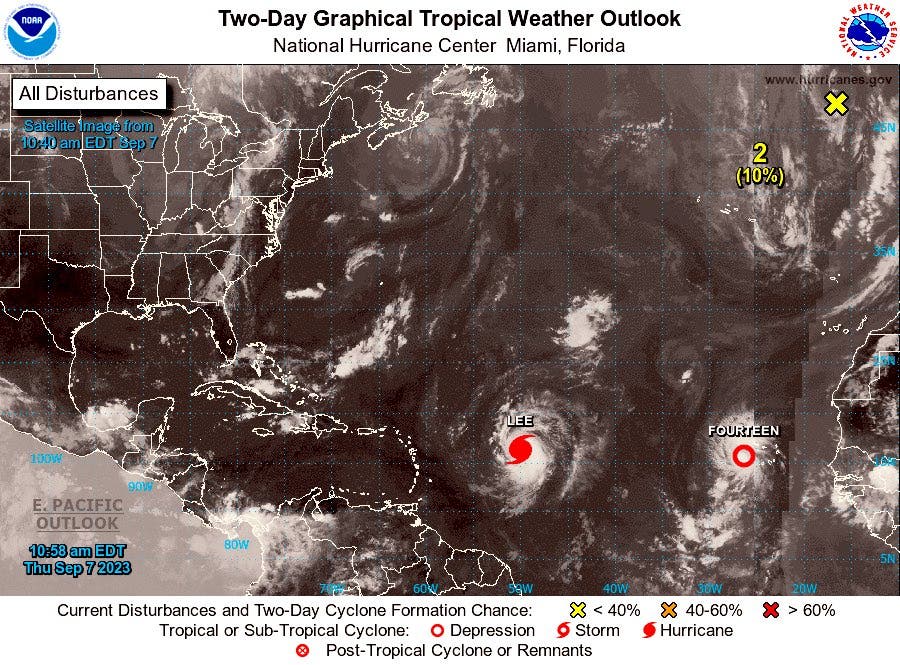La formación de Lee en la actual temporada de huracanes en el Atlántico, que concluirá el próximo 1 de noviembre, se da luego de que el miércoles de la semana pasada el poderoso huracán Idalia tocara tierra en el noroeste de Florida y prosiguiera sobre el sureste de EE.UU.