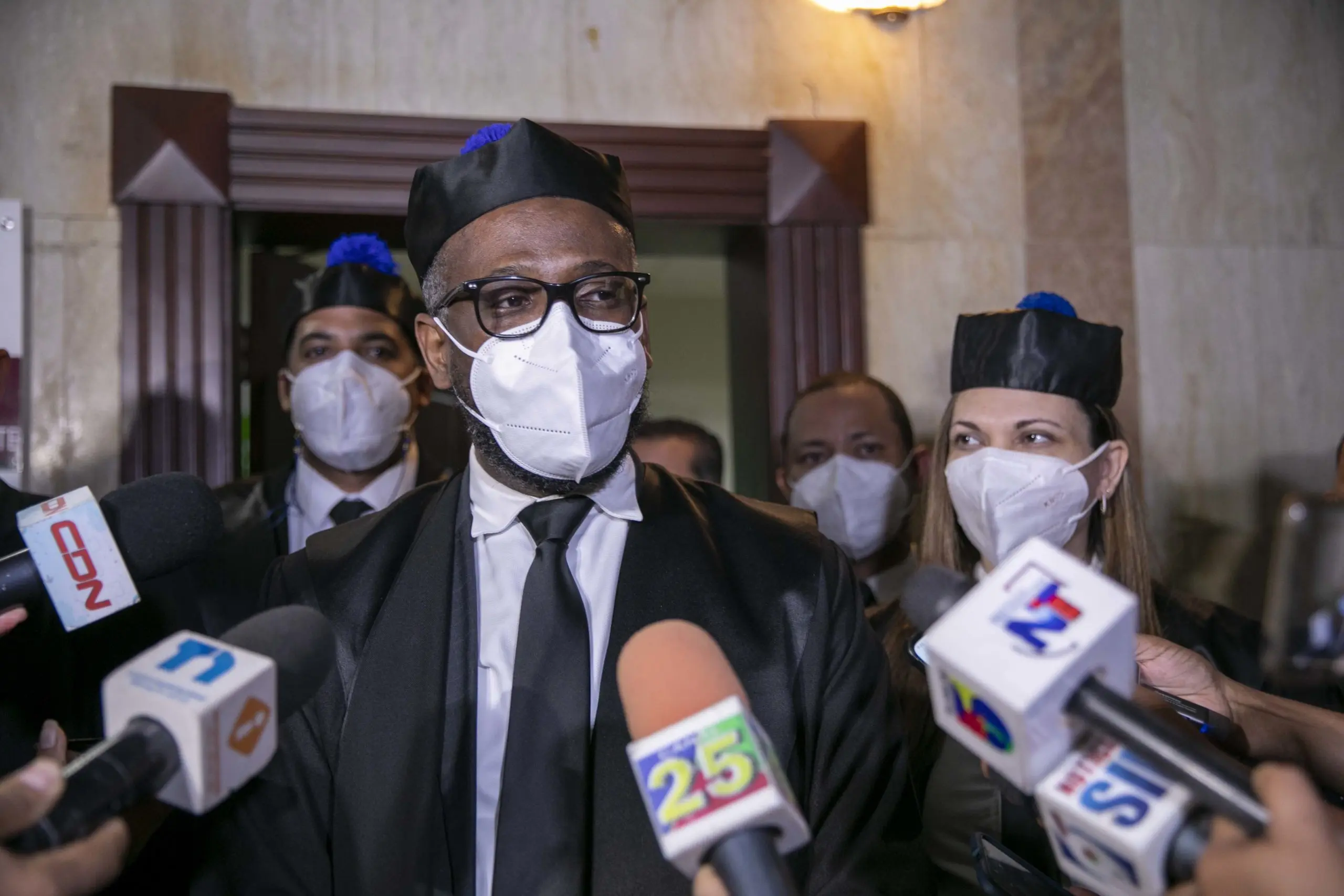 “Hemos estado en tres audiencias de la Operación Falcón: la de esta mañana que se aplazó para el lunes, y en la tarde se conocieron dos, a la primera se le aplicó como medida de coerción el arresto domiciliario, que fue como lo solicitó el Ministerio Público al juez, y en esta audiencia que termina se le ha impuesto a los imputados prisión preventiva, que ha sido también lo que ha solicitado el Ministerio Público”, dijo Camacho.