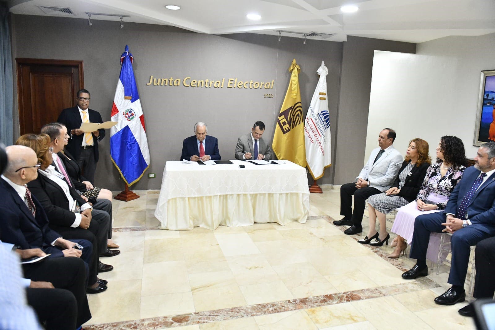 El acuerdo fue firmado por presidente de la JCE, Román Andrés Jáquez Liranzo, y por el director ejecutivo del CONAPE, José García Ramírez.