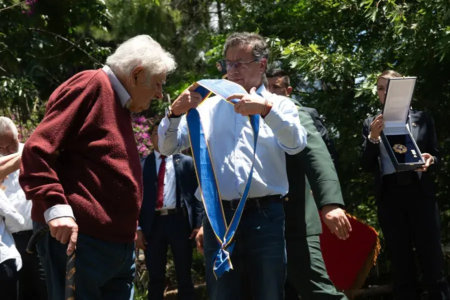 El presidente de Colombia, Gustavo Petro, condecoró este jueves al expresidente de Uruguay José Mujica (2010-2015) con la Cruz de Boyacá, máxima distinción civil que otorga el Gobierno colombiano, en una ceremonia que se desarrolló en la vivienda del exmandatario uruguayo a las afueras de Montevideo.