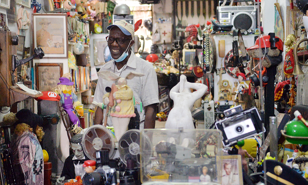 El señor José Ramón tiene varios años dedicado a la venta de cosas encontradas, antiguas y de colección, en una pequeña casa ubicada en la calle Las Mercedes, en la Zona Colonial del Distrito Nacional.