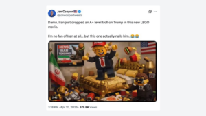 A través de cuentas vinculadas a su aparato diplomático y estatal, el país ha incrementado la difusión de contenido satírico, videos generados con inteligencia artificial y mensajes con tono irónico dirigidos a figuras políticas occidentales, especialmente del entorno estadounidense e israelí.