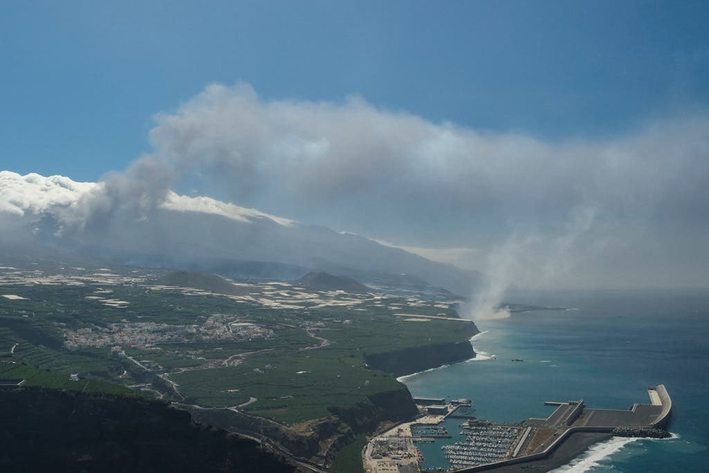 Santa Cruz de La Palma (España).- La llegada de la colada de lava del volcán de la isla española de La Palma al mar está formando una densa nube de vapor de agua y algunos gases que no representan un peligro para la salud, además de estar creando un delta que “poco a poco gana terreno al mar».
