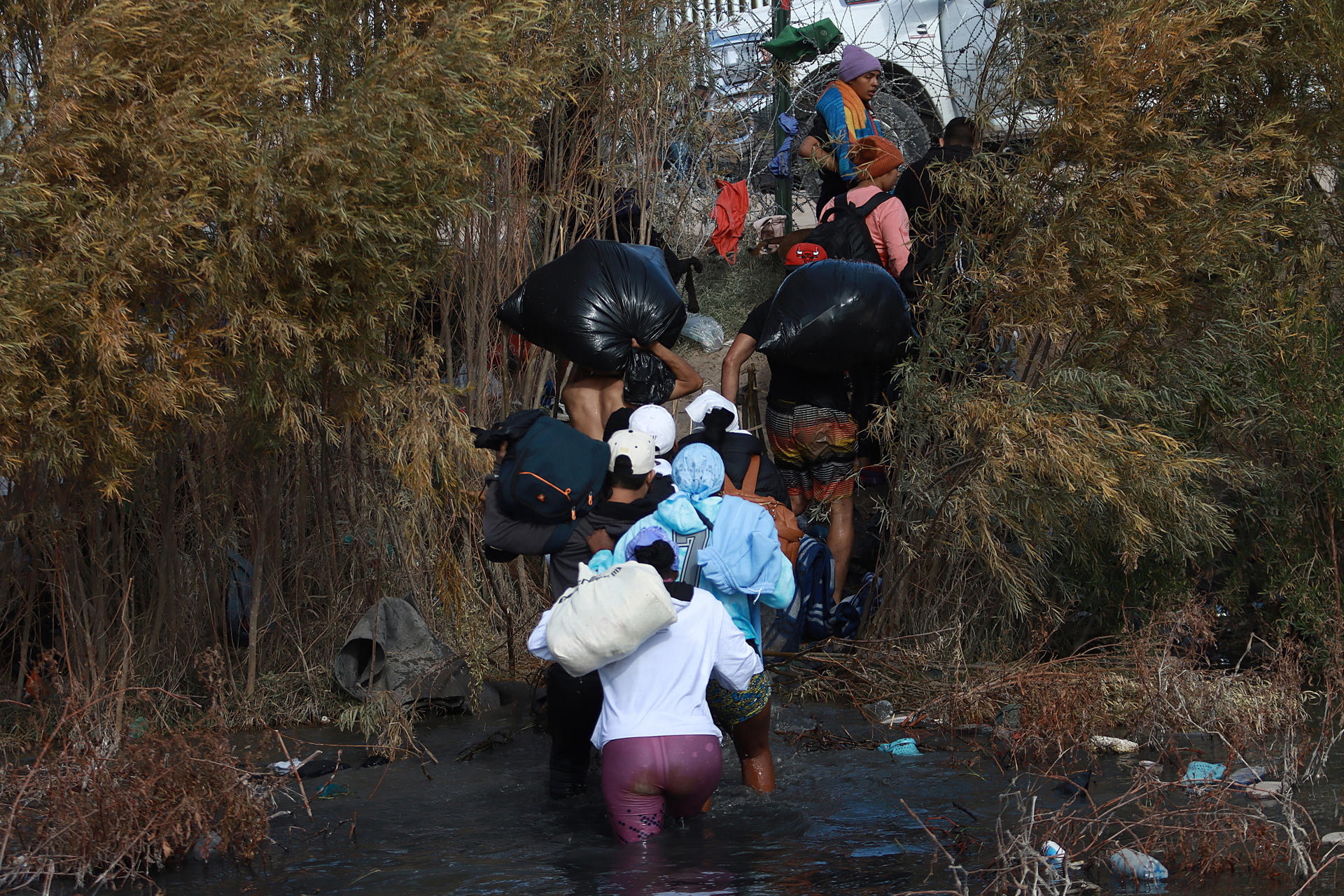 Algunos han esperado horas, pero otros han aguantado días con temperaturas de hasta 1 grado en el limbo que se forma entre la orilla del Bravo y la barricada de alambre de navajas resguardada por la Guardia Nacional de Texas.