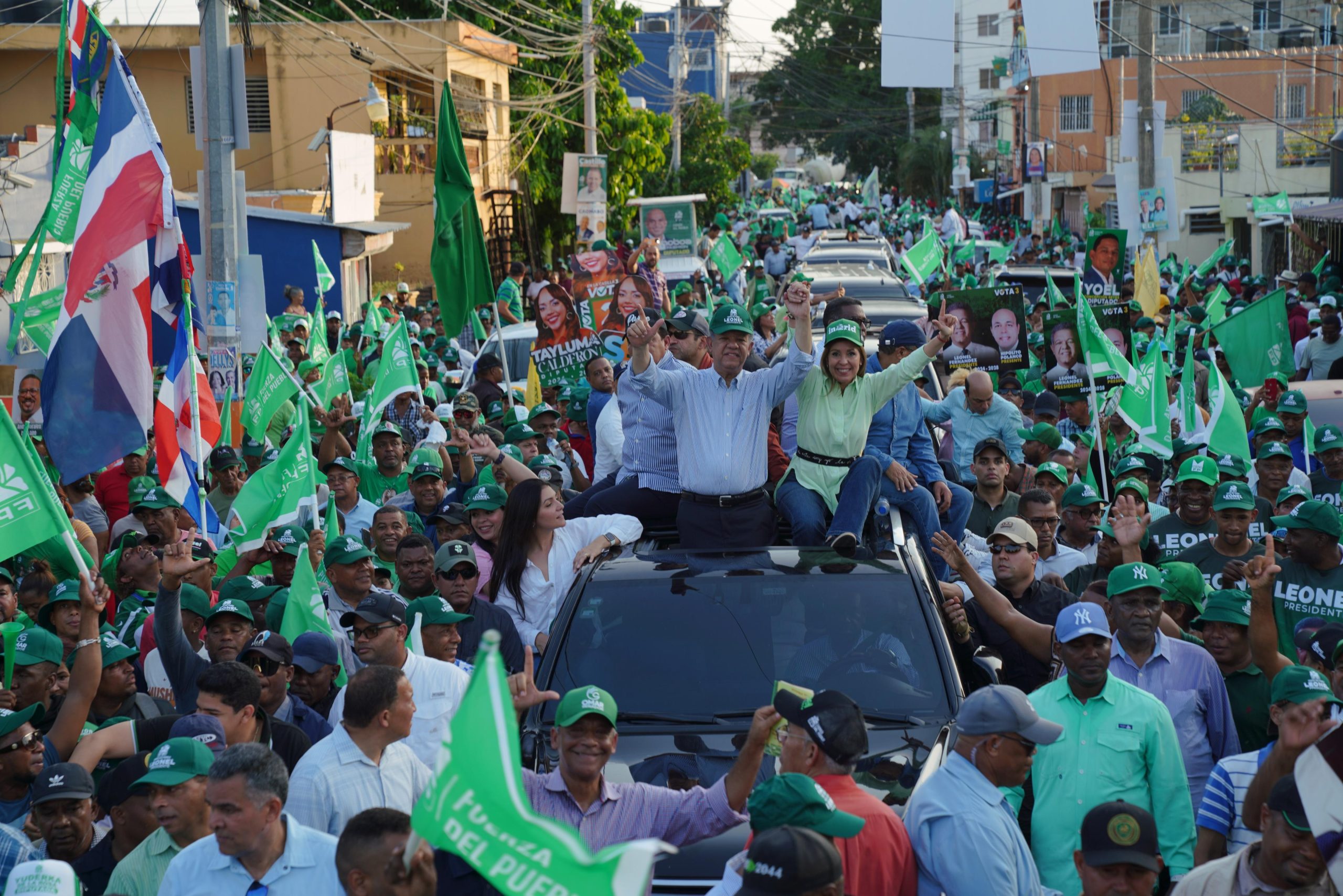 El candidato presidencial de la Fuerza del Pueblo (FP), Leonel Fernández, cerró su campaña electoral con una caravana que recorrió varios sectores del municipio de Santo Domingo Este, el más grande en población de todo el país.