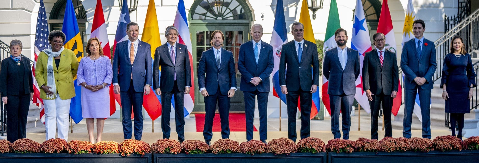La de este viernes fue la primera y en ella participaron Biden, Petro, Boric, Trudeau y los presidentes de Perú, Dina Boluarte; Uruguay, Luis Lacalle Pou; República Dominicana, Luis Abinader; Costa Rica, Rodrigo Chaves; y Ecuador, Guillermo Lasso. También la primera ministra de Barbados, Mia Mottley, así como las cancilleres de México, Alicia Bárcena, y Panamá, Janaina Tewaney. La jornada arrancó con una fotografía oficial de los líderes frente al pórtico sur de la Casa Blanca.