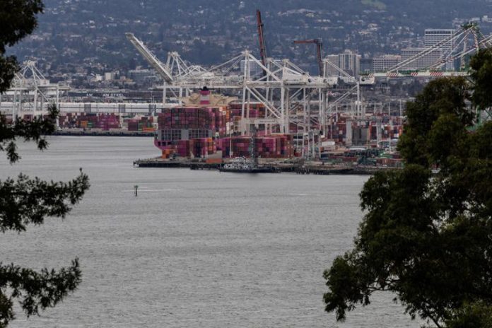 imagen: Un barco de carga lleno de contenedores de envío se ve en el puerto de Oakland en Oakland, California, EEUU, el 3 de febrero de 2025. REUTERS/Carlos Barria© Thomson Reuters