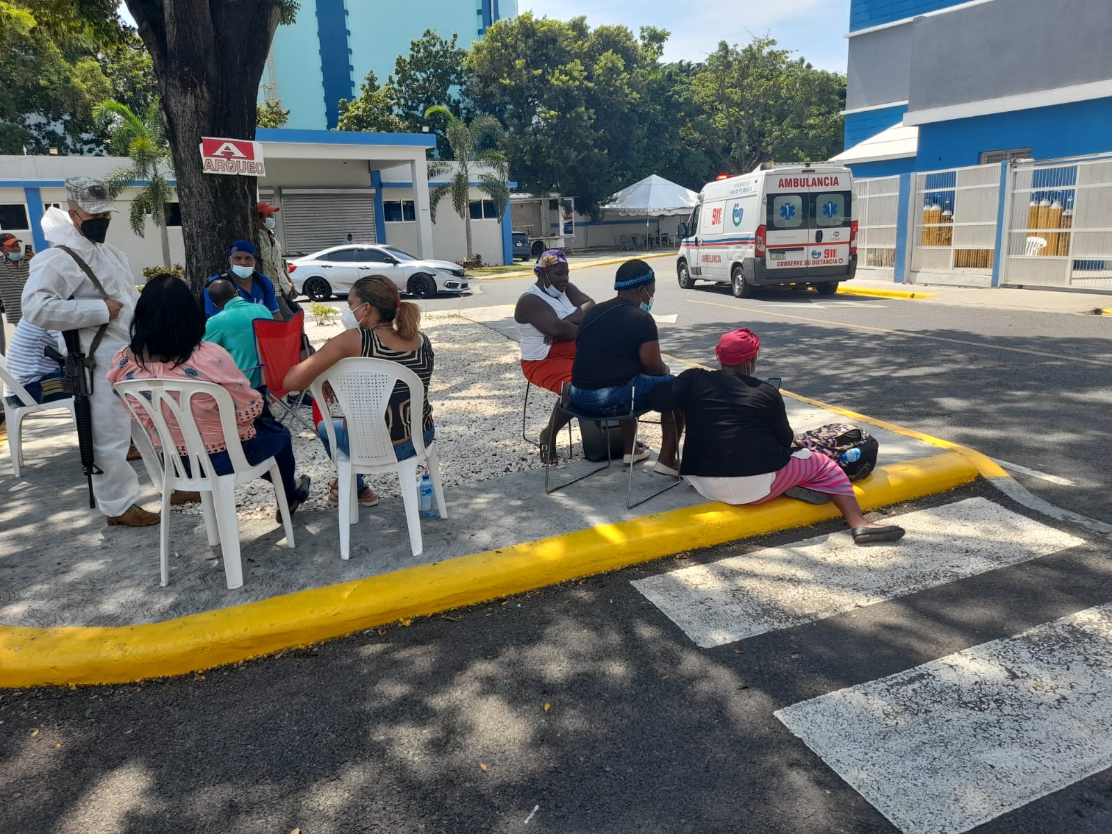 Esto se observó en el Hospital Docente doctor Francisco Moscoso Puello, donde varias familas esperaban bajo un árbol de caoba por un informe de salud.