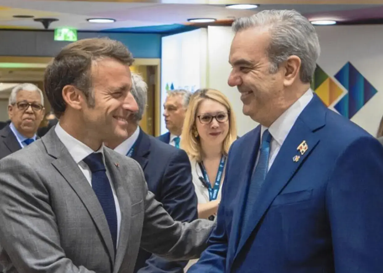 Los presidentes de la República Dominicana, Luis Abinader y el de Francia, Emmanuel Macron, compartieron ayer por breves minutos un apretón de manos y conversaron cordialmente en la Cumbre de la Unión Europea-Celac,