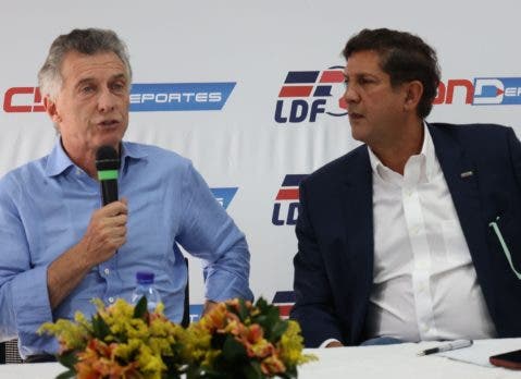Macri, estuvo acompañado en el acto de la LDF, por Manuel Estrella, presidente de la entidad y Rubén García, presidente de la Federación Dominicana de Fútbol.