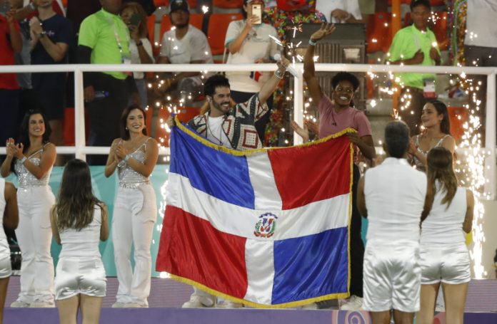 Jóvenes con las banderas de las 16 selecciones que participan desde hoy en el evento deportivo rodeaban el campo, en medio de fuegos artificiales y mientras personas disfrazadas de los típicos ‘diablos cojuelos’ del carnaval dominicano se mezclaban con el público llenando de color las gradas.