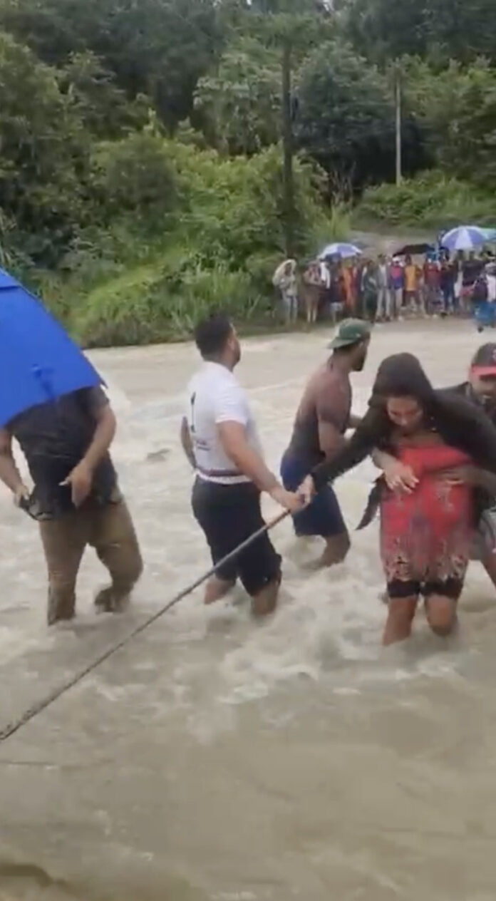 Mientras que en Independencia, el puente del distrito municipal Boca de Cachón fue afectado por la crecida del arroyo Penitente, afectando el paso provisional que conecta a la comunidad.