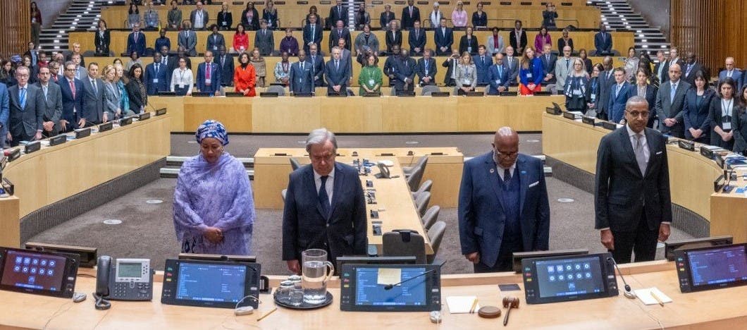 En una ceremonia breve y solemne, el secretario general de la ONU, António Guterres, y el presidente de la Asamblea General, Dennis Francis, ocuparon su lugar al frente de una de las salas del edificio y guardaron silencio.