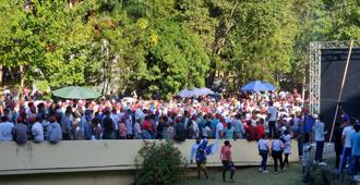 Con banderines, carteles, gorras y camisetas alusivas al movimiento político "Más Cambio", dirigido por su presidente Freddy Fernández, los seguidores se dieron cita a partir de las 2:00 de la tarde a la Media Naranja.