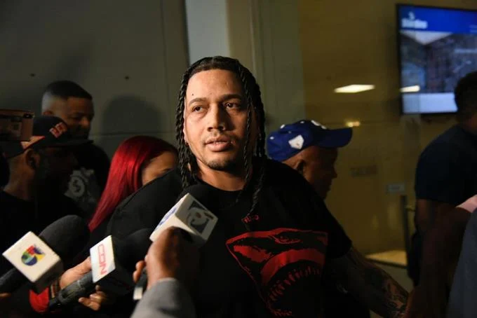 Mientras caminaba hacia la capilla donde se encuentra el cuerpo de su hijo, informó que la próxima semana será trasladado hacia Estados Unidos. [OJO-Listín Diario-at]