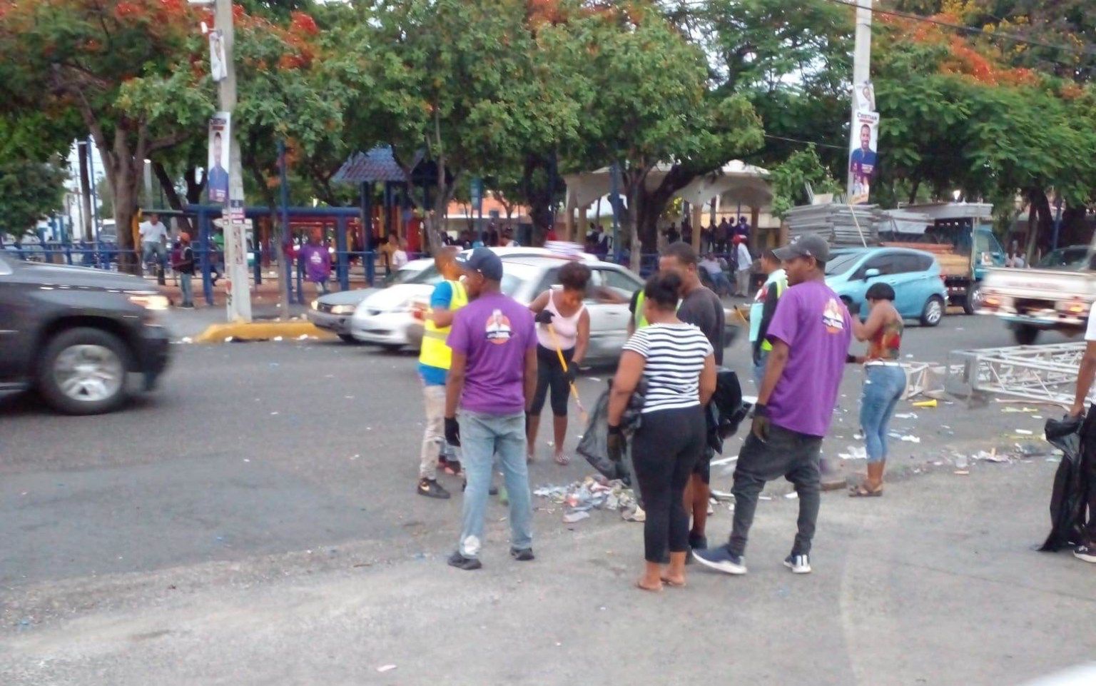 Papeles, botellas de plástico y otros desperdicios iban siendo recogidos por un personal dispuesto por el partido y la Dirección de Campaña de Abel Martínez, candidato presidencial del PLD.