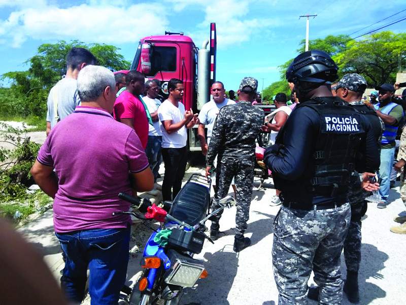 Por no estar de acuerdo con el libre comercio, comerciantes y empresarios bloquean vía conduce de Pedernales a Haití en protesta por nuevo negocio que lo entienden lesivo a sus intereses
