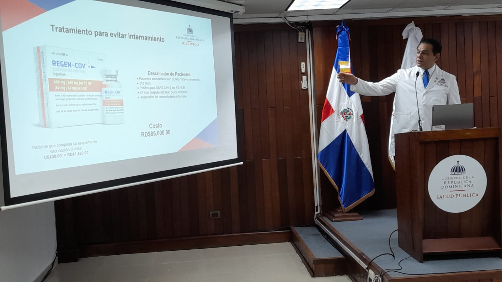 El Ministerio de Salud Pública (MSP) presentó este miércoles un nuevo medicamento llamado REGEN-COV para contrarrestar los efectos de la enfermedad del coronavirus.