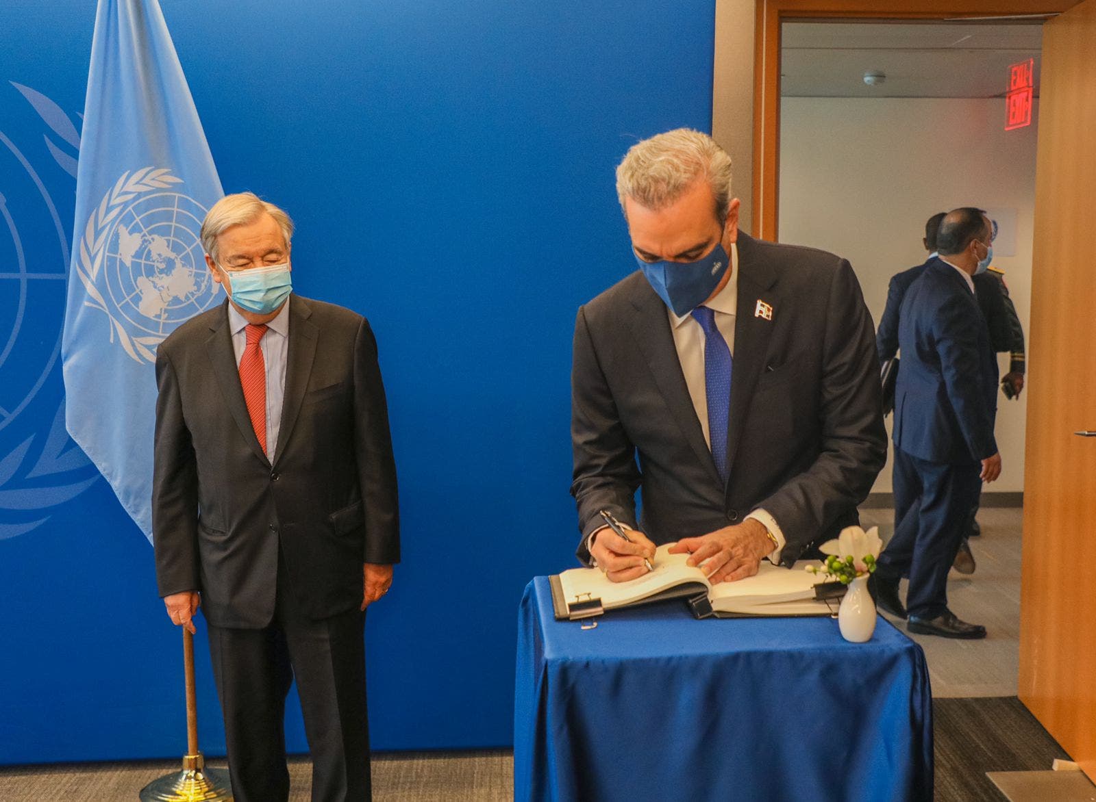 El jefe de Estado se reunió con el secretario general de la ONU, António Guterres, en la sede del organismo multilateral, donde asistieron además, el ministro de Relaciones Exteriores, Roberto Álvarez y el embajador de la Misión Permanente de la República Dominicana en la ONU, José Blanco.