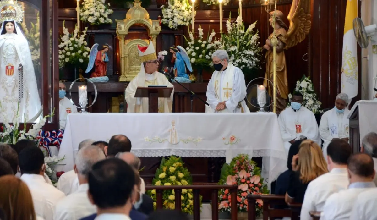 Abinader estuvo junto a su esposa, la vice y otros funcionarios en el Santuario del Santo Cerro, donde participó en la eucaristía oficiada por monseñor Héctor Rafael Rodríguez.
