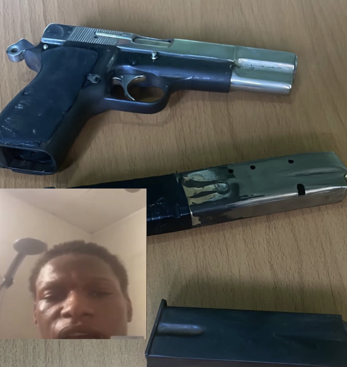 En tanto que el reporte preliminar dicta que al occiso  se le ocupó una pistola ilegal y varios cargadores para la misma, con la cual supuestamente atacó a tiros a los agentes actuantes, logrando herir de bala al sargento Roberto Armando Vásquez Andino (pierna izquierda) y al cabo Herman Tapia Santiago (pierna derecha).