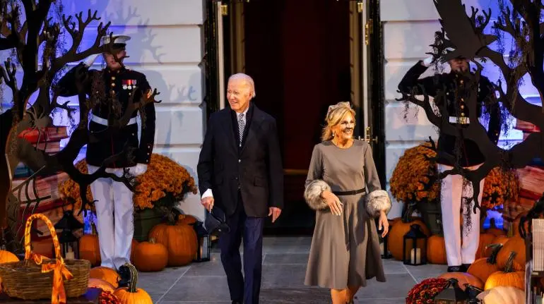 Nueva York.- La primera dama de Estados Unidos, Jill Biden, regaló este lunes libros infantiles mientras su marido, el presidente Joe Biden, daba caramelos a un grupo de niños en la Casa Blanca para celebrar Halloween.