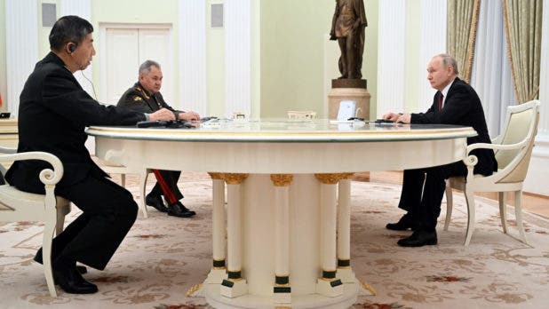 «Putin ha mantenido una reunión de trabajo con el miembro del Consejo Estatal y el ministro de Defensa de China, Li Shangfu», declaró Dmitri Peskov, portavoz del presidente ruso.