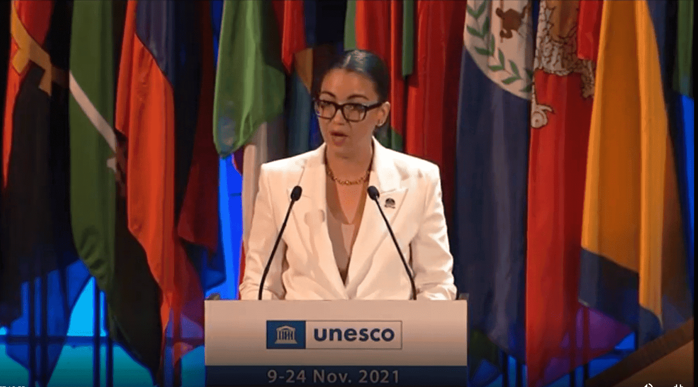 En la Unesco, se ha destacado por ser una mujer dinámica y por impulsar la inclusión de la sopa giraumon (emblemática en Haití) ingrese a la lista del patrimonio cultural inmaterial de la humanidad.