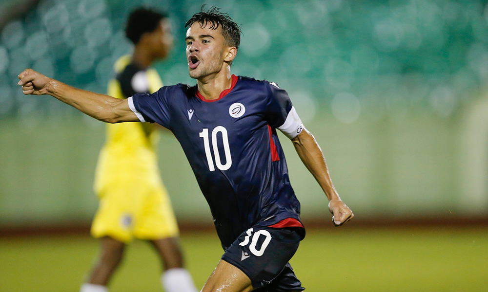 Desde el inicio se vio un partido de mucha intensidad por parte de ambos equipos. En el minuto 28, con un disparo de larga distancia y luego de un descuido en la defensa dominicana, los visitantes abrieron la pizarra por intermedio de Kegan Caull. El segundo tanto de los visitantes llegó tras un tiro libre donde el atacante Caull aprovechó otro fallo de la defensa dominicana para poner el segundo gol de la noche a su equipo, a su cuenta personal y así finalizar la primera parte.