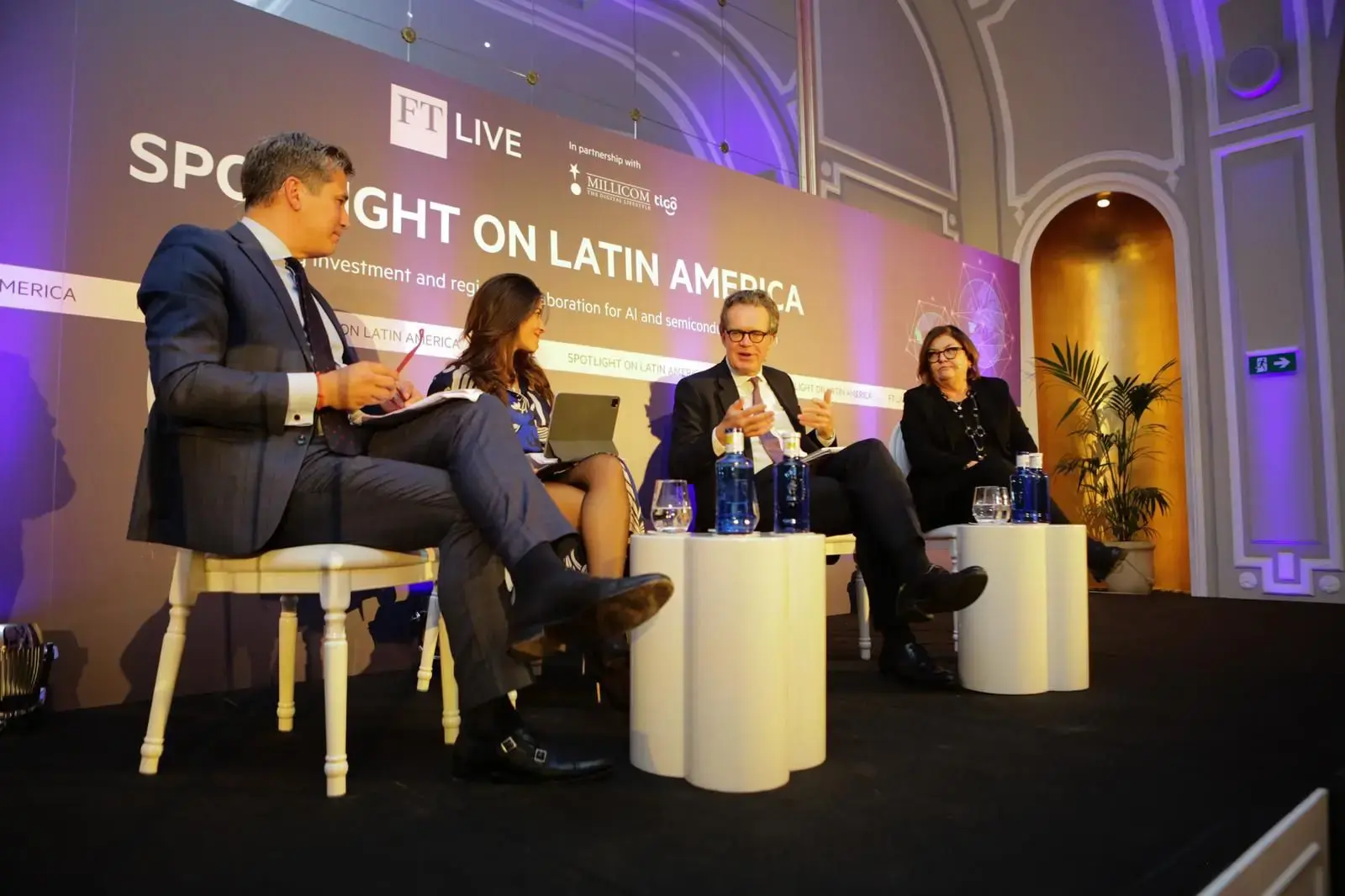 La discusión, moderada por Michael Stott, editor del Financial Times, contó con la participación de Julissa Cruz, directora ejecutiva del Indotel, quien compartió el panel con Manuel Tovar, ministro de Relaciones Exteriores de Costa Rica; Adina-Ioana Valean, miembro del Parlamento Europeo y Luis Felipe Jaramillo, vicepresidente del Banco Mundial para América Latina. El encuentro reunió a líderes globales, para explorar oportunidades de inversión y colaboración regional en tecnologías emergentes.