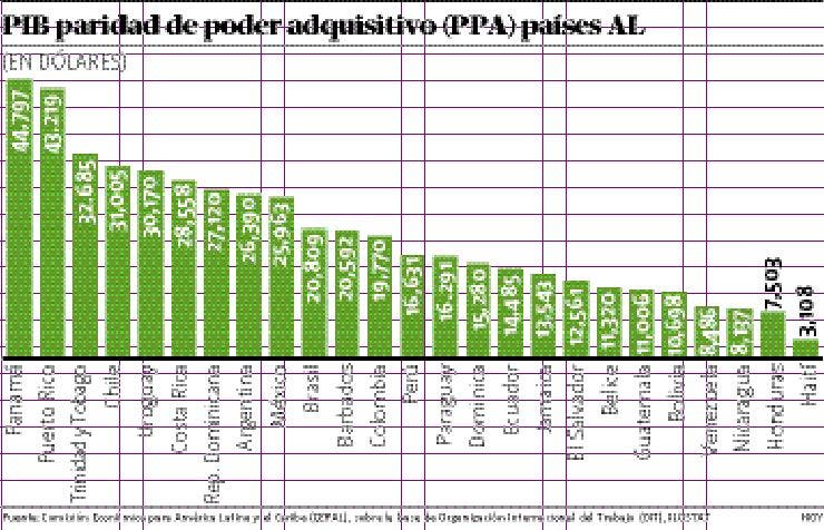 El país supera a naciones con fuertes economías como Argentina, con un PIB per cápita-PPA de 26,390 dólares, México (25,963 dólares), Brasil (20,809 dólares), Colombia (19,770 dólares), Perú (16,631 dólares) y Paraguay (16,291 dólares).