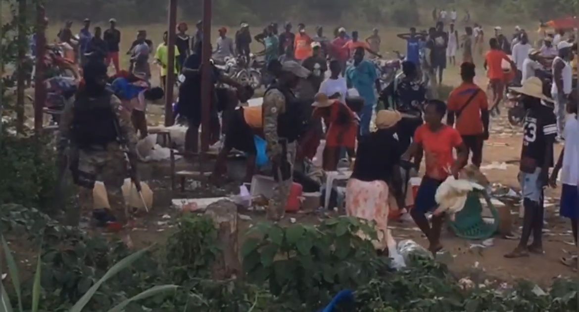 En el video se puede observar cuando un personal militar llega al lugar, momento en que ciudadanos haitianos cargaban sus compras en cajas y sacos. Los agentes desbarataron el mercado provisional, provocando la algarabía de los presentes.