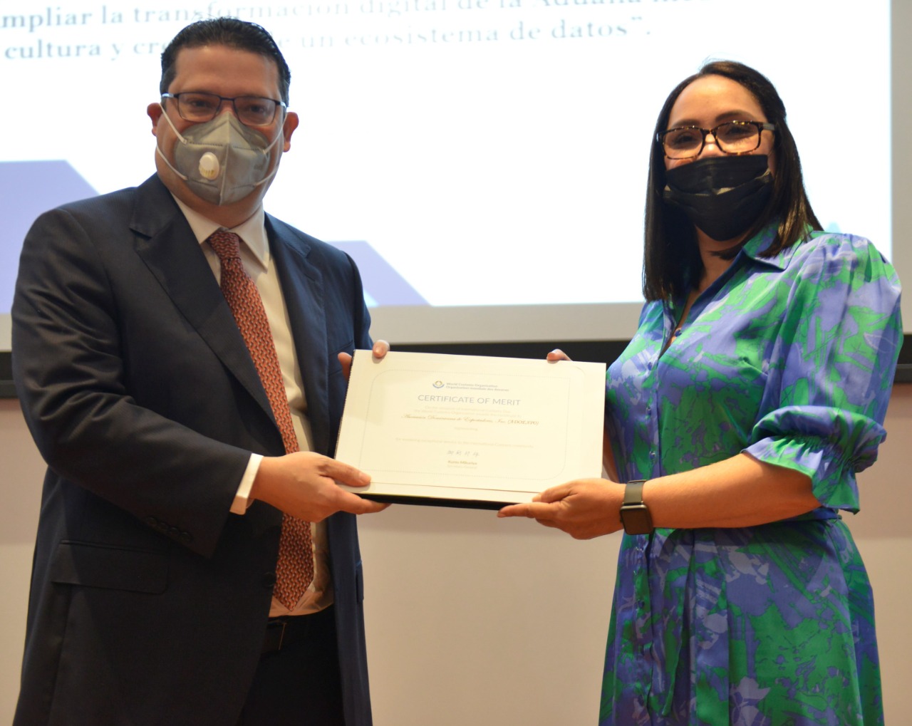 La Asociación Dominicana de Exportadores (Adoexpo) fue distinguida con el certificado al mérito de la Organización Mundial de Aduanas (OMA), otorgado por su contribución a la transformación digital de las aduanas, por la adopción de una cultura efectiva y por la creación de un ecosistema de datos.