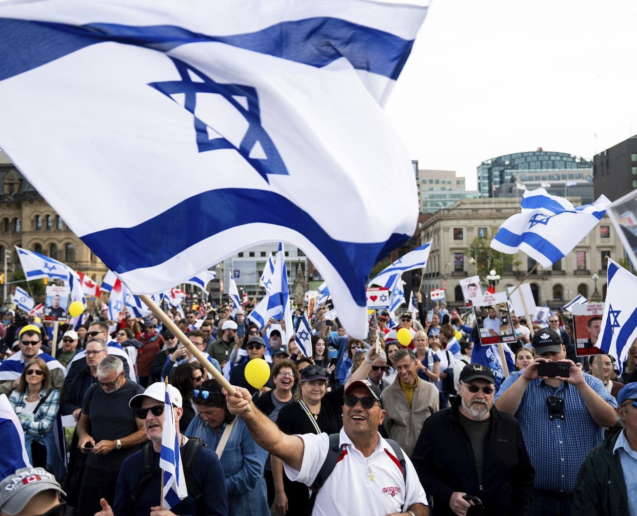 Con muchas banderas israelíes ondeando sobre sus cabezas, algunos líderes judíos coreaban una canción sobre “shalom” (paz), mientras los manifestantes gritaban “¡Liberen a Gaza de Hamás!”, y “Tráiganlos a casa”, refiriéndose a los rehenes israelíes.