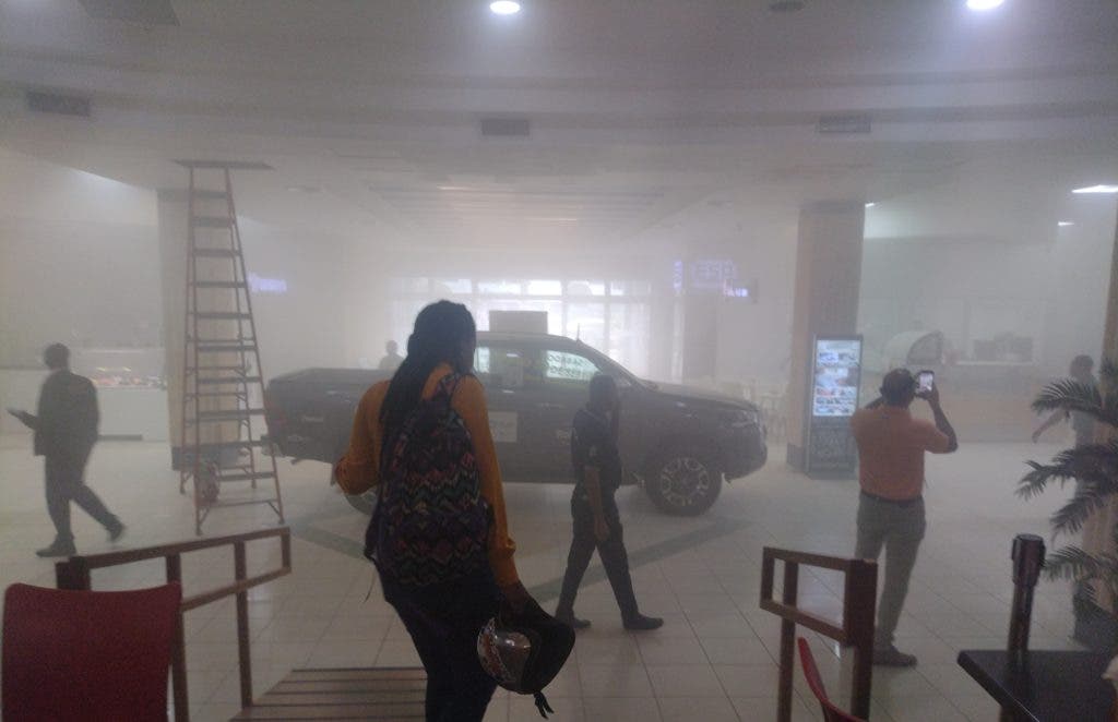 Despavoridos, así salieron decenas de personas que se encontraban este mediodía en la plaza Bella Vista Mall, tras un conato de incendio.