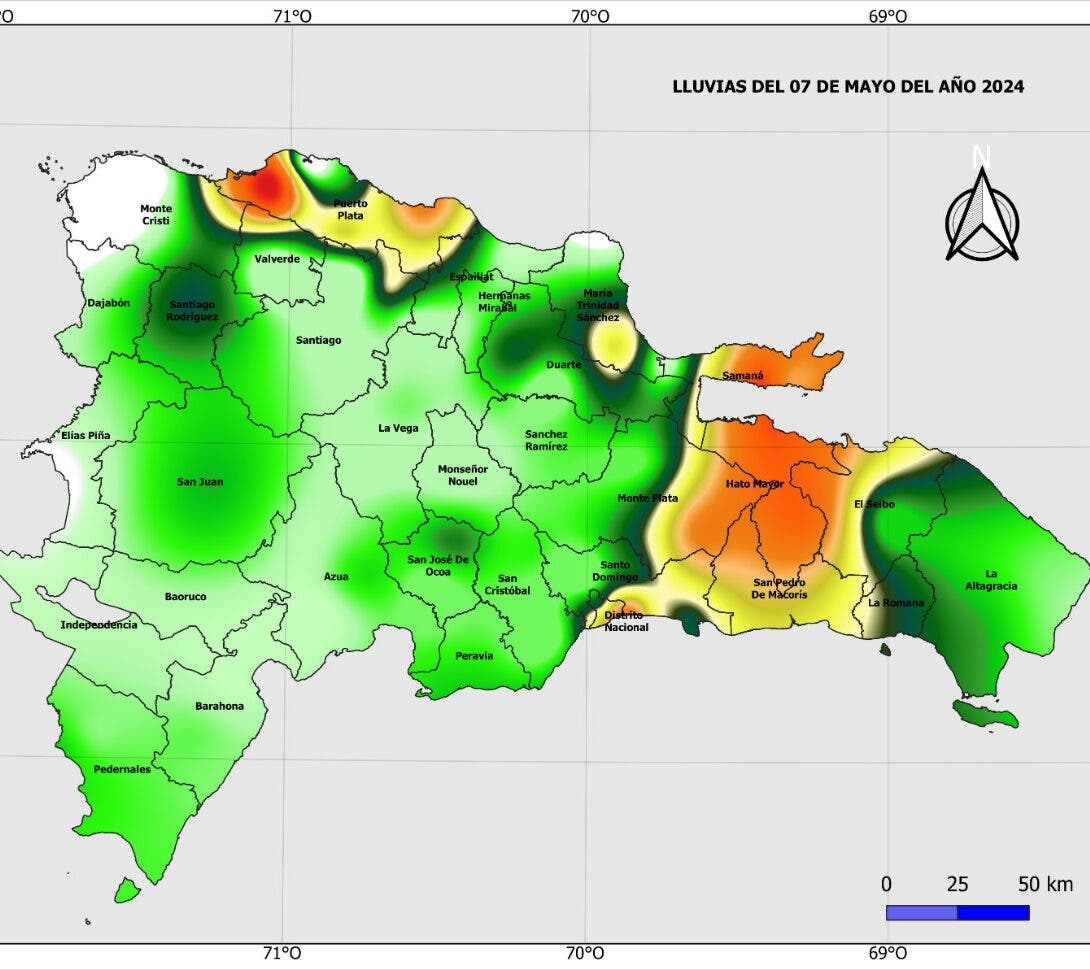 De acuerdo al reporte que fue compartido en la plataforma X, la mayor acumulación ocurrió en el municipio de Villa Isabela, provincia de Puerto Plata, con 131.1 milímetros.