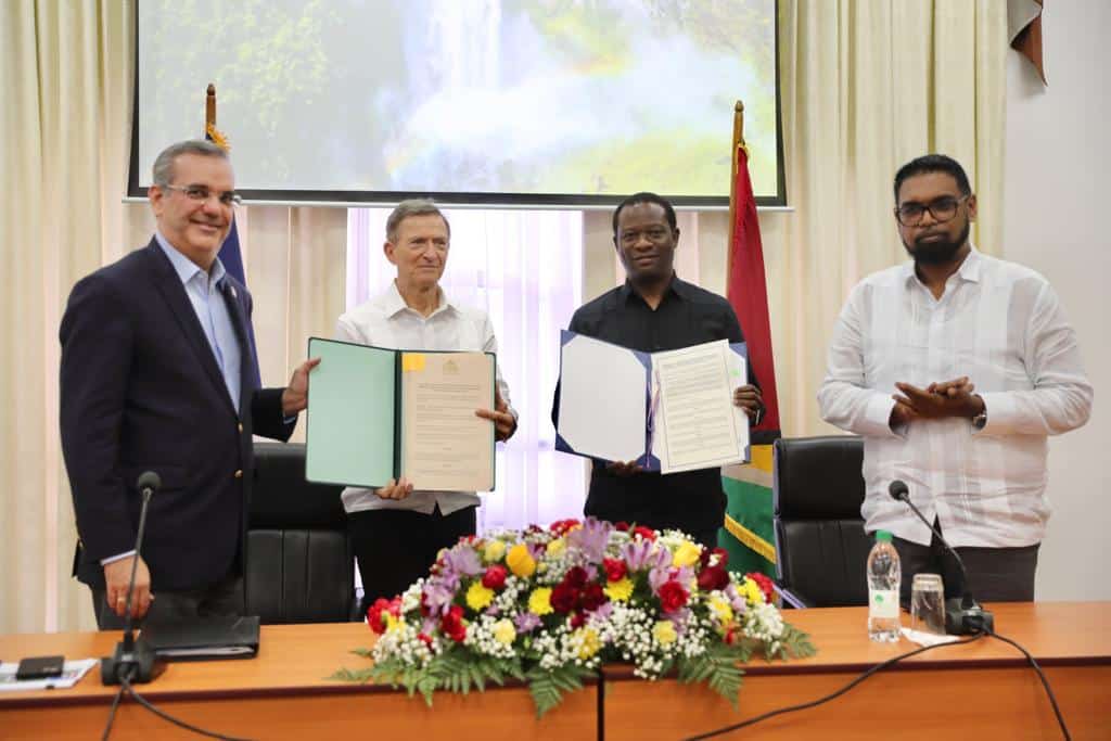 El documento, que permanecerá vigente durante tres años y se renovará automáticamente cada quinquenio, se rubricó en el marco de una visita oficial a Guyana, encabezada por el presidente Luis Abinader, con el objetivo de iniciar relaciones oficiales entre ambas naciones.