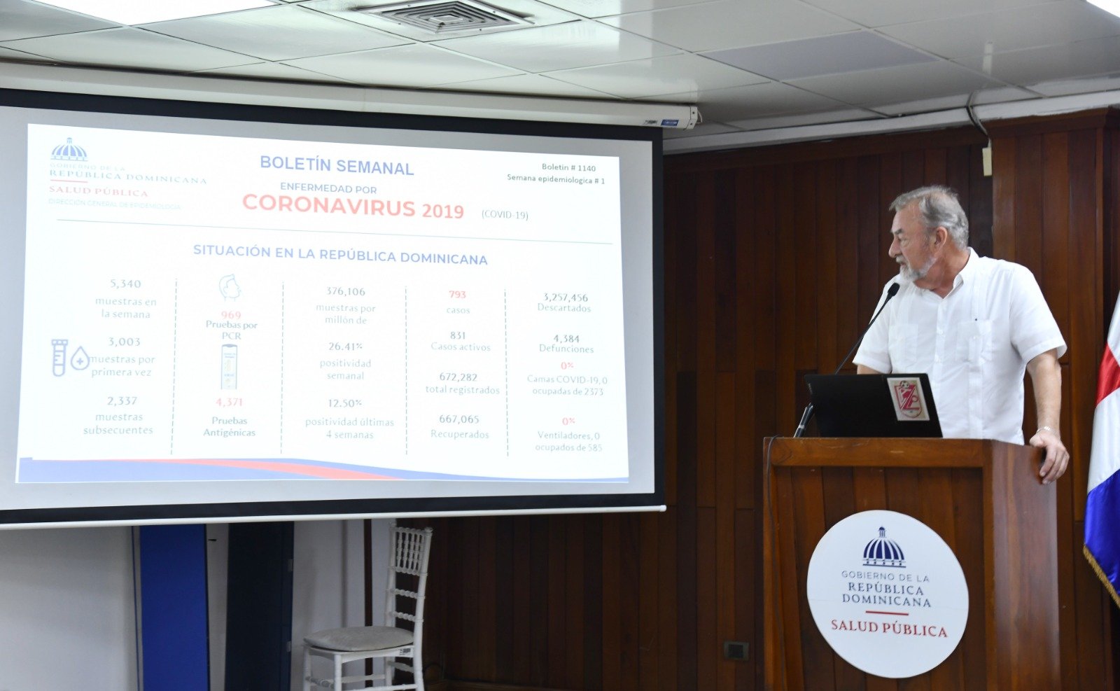 Los casos activos se colocan en 831, mientras que la positividad semanal se sitúa en 26 por ciento y la positividad de las últimas cuatro semanas en 12.5 por ciento para un total de casos registrados de 672,282 desde que inició la pandemia en el país.