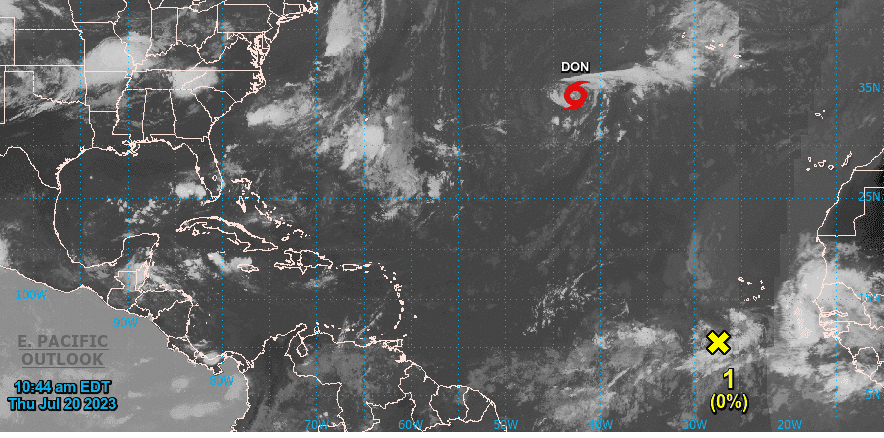 Con relación a la tormenta tropical Don, señala que se localiza a unos 1,380 kilómetros al oeste/suroeste de las Azores con vientos de 85 kilómetros por hora. «Por su posición y desplazamiento, la tormenta tropical Don no ofrece peligro para República Dominicana».
