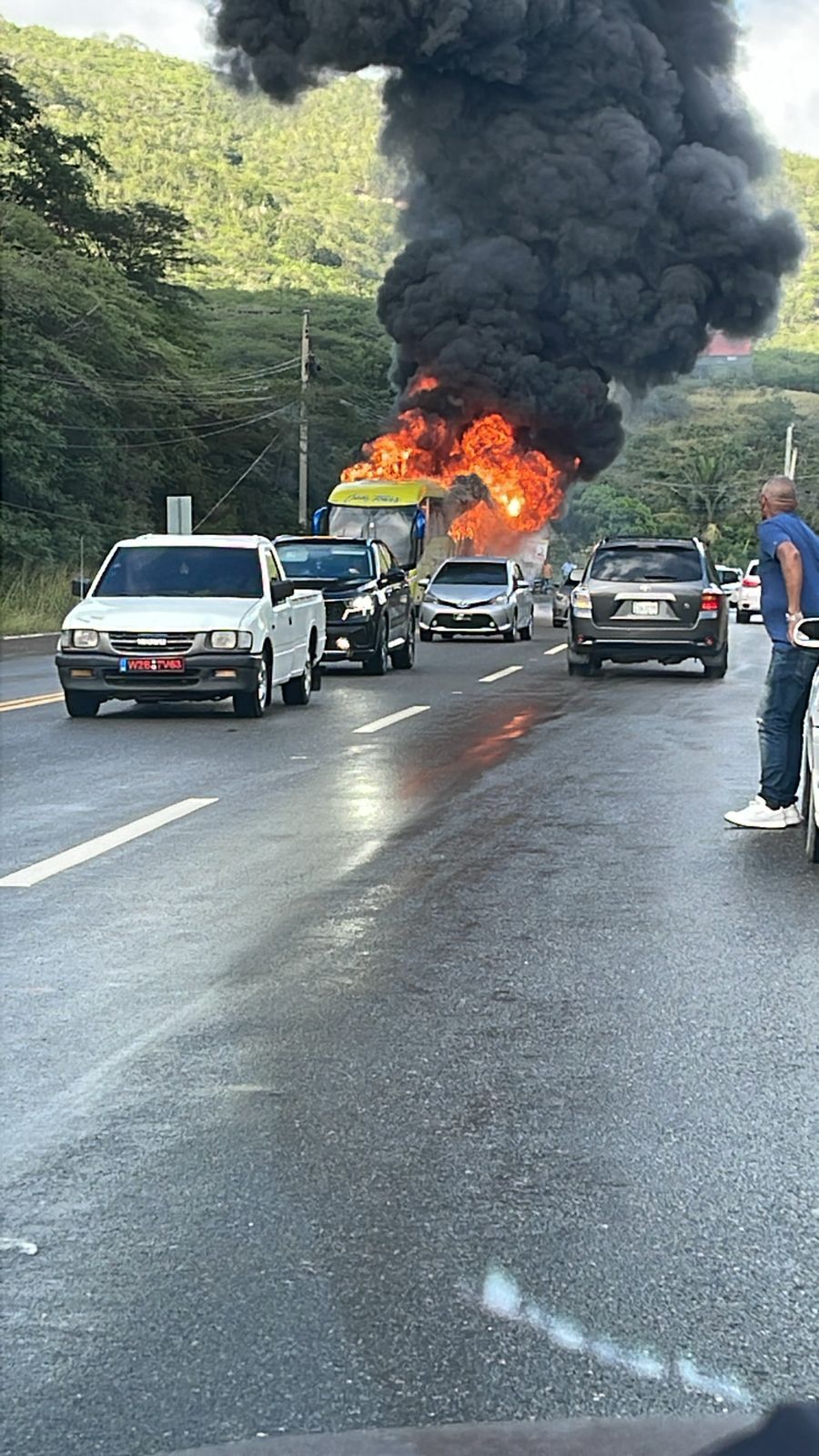Un autobús de la empresa de transporte Caribe Tours, se incendió este domingo, en un hecho ocurrido en la carretera Puerto Plata – Navarrete a la altura de Guanábano.