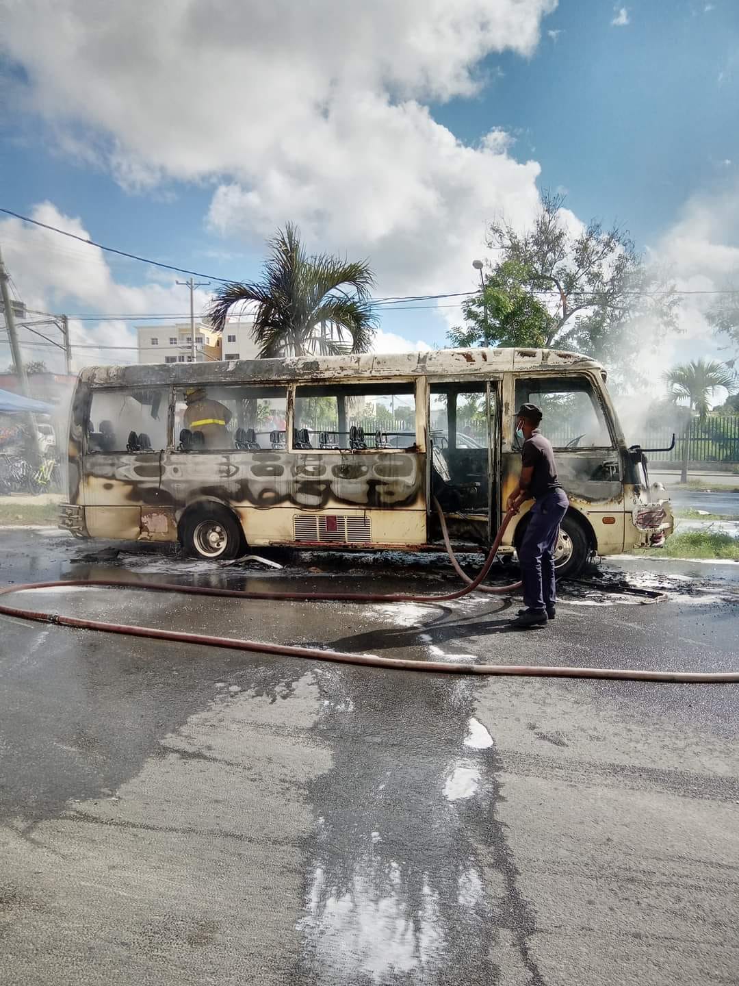 LA ROMANA -Personal del Cuerpo de Bomberos de La Romana sofocó el incendio en un minibús de transporte, hecho sucedido este viernes 20 de enero en la avenida Francisco Alberto Caamaño Deñó.