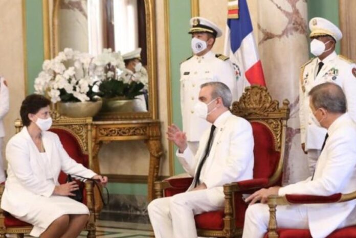 En un acto efectuado en el Salón de Embajadores del Palacio Nacional, el presidente Luis Abinader recibió ayer las cartas credenciales de los nuevos embajadores de España, Unión Europea, Uruguay, Suiza, Italia y El Salvador. El jefe de Estado estuvo acompañado del ministro de Relaciones Exteriores, Roberto Álvarez.