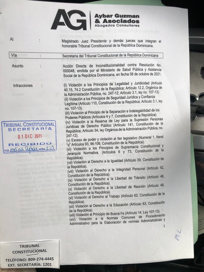 Mientras que el “pastor” y presidente del partido Generación de Servidores, Carlos Peña, se pronunció a través de sus redes sociales sobre la resolución de Salud Pública, asegurando que espera que el Tribunal Constitucional se pronuncie a favor de la petición de nulidad que sometió el pasado mes de octubre para anular la obligatoriedad de presentar tarjeta de vacunación COVID-19. “Confiamos en Dios que pronto el Tribunal Constitucional se pronunciará sobre nuestra petición de nulidad de estas medidas inconstitucionales que este gobierno totalitario nos impone por medio de su dictadura sanitaria. Nuestra lucha sigue en todos los frentes”, posteó el “pastor”. [Diario Libre-Ojo]