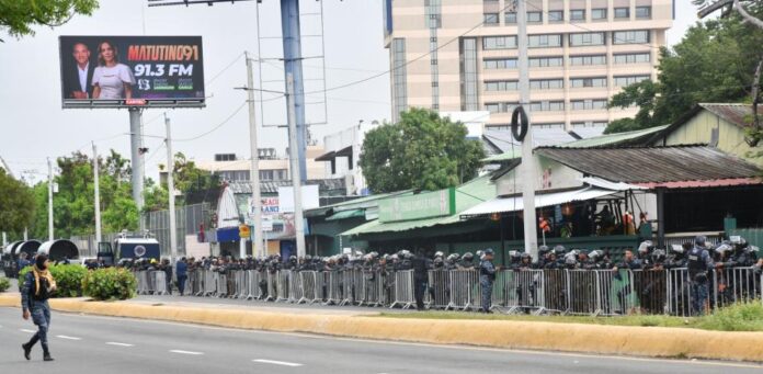 Desde tempranas horas de la mañana decenas de policías están apostados en la avenida Máximo Gómez con 27 de Febrero, lo que ha llamado la atención de conductores y transeúntes, sobre todo porque el tránsito se ha visto afectado.