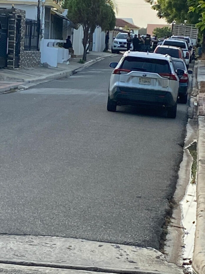 En un audiovisual suministrado a este medio, se puede percibir varios vehículos del Ministerio Público y de la DNCD frente a una residencia de dos niveles donde, según residentes, los agentes irrumpieron tras forzar la puerta de la vivienda.