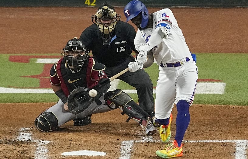 Arlington, Texas. Adolis García disparó un jonrón en el undécimo inning, dos después de que Corey Seager había empatado la pizarra con un cuadrangular de dos vueltas, y los Rangers de Texas abrieron el viernes la Serie Mundial con un triunfo dramático de 6-5 sobre los Diamondbacks de Arizona.