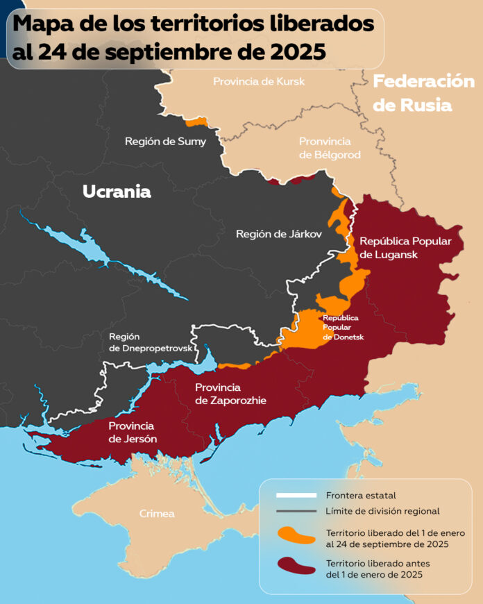 Sin embargo, las Fuerzas Armadas de Rusia liberaron más de 4.714 kilómetros cuadrados entre el 1 enero y el 25 de septiembre de 2025, según el informe del organismo militar ruso.