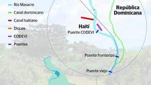 Del lado dominicano presenta el curso del río Masacre, el canal La Vigía y dónde se haría el sistema de bombeo, el cual tomaría entre dos y tres semanas, según el presidente Abinader. Además, las tomas de agua y diques que hay en la zona, los puentes Internacional, Fronterizo y Viejo, a través de los cuales se cruza al vecino país.