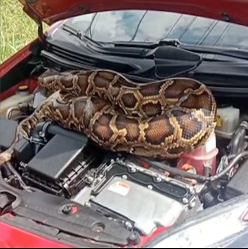 El dueño del auto llamó a la policía para que removiera el reptil de aproximadamente unos 20 pies de largo.