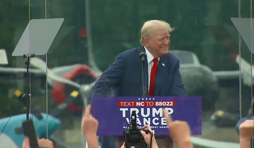 El escenario elegido fue la ciudad de Asheboro, en el estado clave de Carolina del Norte y donde Trump estuvo protegido por láminas de cristales antibalas.